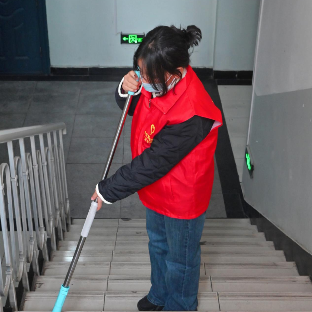 传承雷锋精神,践行时代担当。志愿者们在负责人的带领下分工明确,合理清扫,到处是一派繁忙的景象。他们拿着拖把,抹布,扫帚等清扫工具清理杂物垃圾,认真检查不放过任何卫生死角。在志愿者的共同努力下,大家打扫的区域、卫生死角纷纷旧貌换新颜,为师生营造了干净、整洁、舒适的生活环境。