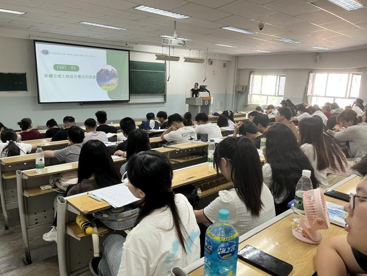 新疆国土综合整治中心生态修复部(自然资源部荒漠-绿洲生态监测与修复工程技术创新中心)科技成果产学研交流负责人正高级工程师刘湘茹应邀做了题为“新疆全域土地综合整治的探索与思考”的精彩专题讲座。我院国土资源管理系系主任邵战林、刘润香老师及2021级土地资源管理专业、房地产开发与管理专业全体学生等参加了此次活动。