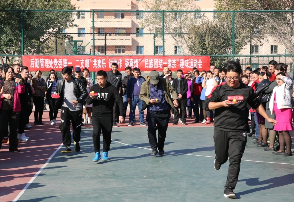 为进一步推动“民族团结一家亲”活动,搭建民族团结教育有效载体,促进各族教职工交往交流交融,后勤管理处党委第一、第二党支部于2019年10月25日下午15:00在塑胶操场举办共欢乐、讲协作、凝真情“民族团结一家亲”趣味运动会,共160余名职工参加。