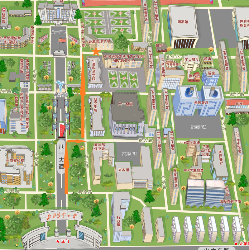 复试考生:可导航至乌鲁木齐市沙依巴克区农大东路311号星空彩票体彩版(老满城校区)。从正门(即东北门)进校后,按下图指引到达我院。