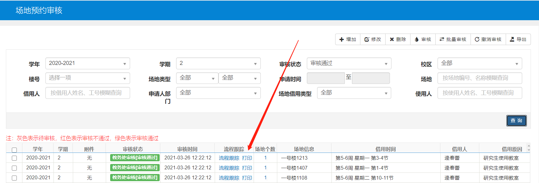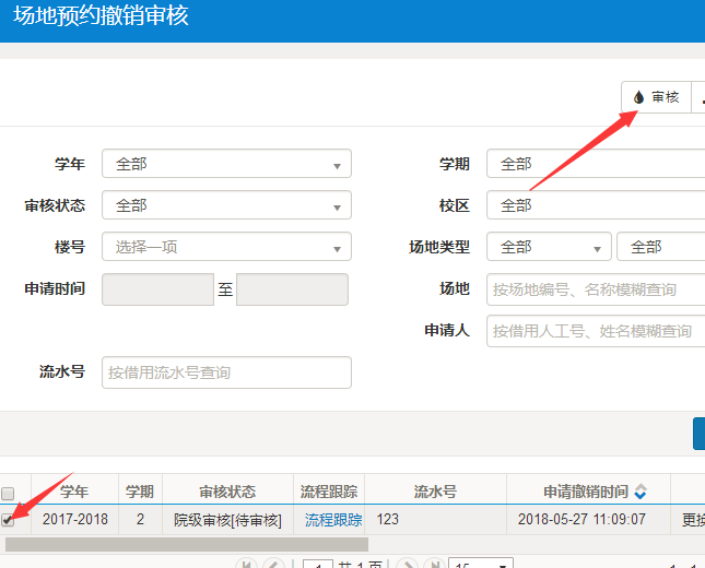 菜单:排课管理-->场地预约管理-->场地预约撤销审核