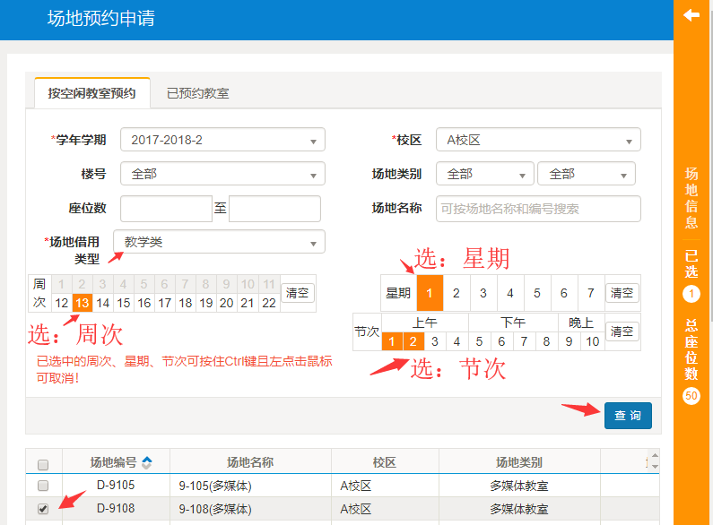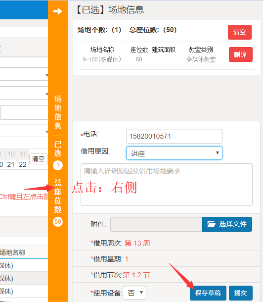 菜单:排课管理-->场地预约管理-->场地预约申请