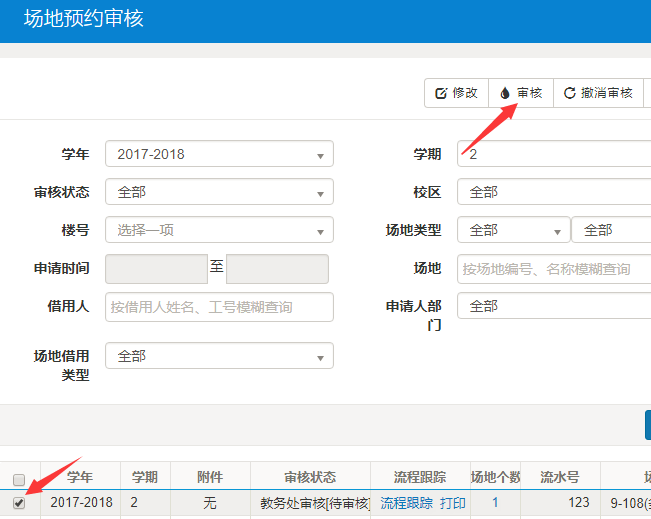 菜单:排课管理-->场地预约管理-->场地预约审核