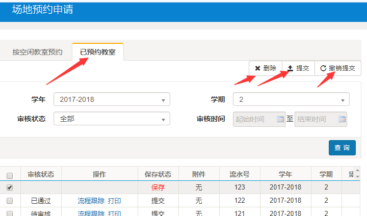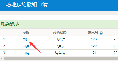 菜单:排课管理-->场地预约管理-->场地预约撤销申请