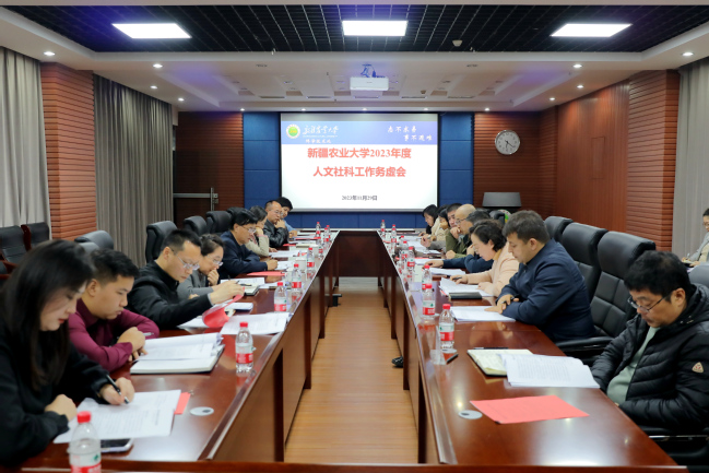 蒋平安指出,自治区社会科学界联合会第六次代表大会的胜利召开,是学校推动人文社科工作高质量发展的最佳契机,要深入贯彻落实自治区社会科学界联合会第六次代表大会精神,为新疆经济社会高质量发展蓄势赋能。学校作为自治区重点建设的农业院校,要积极深入研究新疆改革发展稳定面临的重大理论和现实问题,厘清思路、优化学科布局,找准定位、强化科研攻关,统筹规划、健全人才梯队;着眼全局、完善创新机制。他从一流学科建设、学校内部态势等维度深入分析了当前存在的困难和面临的问题,并指出统筹推动学校人文社科繁荣发展,一要持续建强人文社科研究队伍,利用教育部专项质量工程项目、对口支援计划等,以团队建设促进青年教师专业成长,全力打造高水平社科研究团队;二要加强各学科之间的学科融合,主与各学院学科之间联系,形成产业链的模式,推动社科项目的发展;三要围绕国家社科重点项目进行深入研究,主动带队伍到实地去研究,深入基层进行调研;四要主动了解国家社科的需求,根据学校对应的特色进行相应的对接;五要注重培育优势特色人文社科基地建设,围绕农科特色把准人文社科研究方向,重点在农业全产业链、乡村振兴和共同富裕、碳中和与生态环境治理、农村基层党建、治理体系和治理能力现代化、思想政治理论研究等领域积极培育具有农科优势特色的自治区级人文社科基地;六要突出对青年教师的培养历练,鼓励青年教师积极走出去,勇挑重担、承担重大、重点项目;七要把握好公派教师的培养,鼓励教师积极主动申报,进行相应的鼓励政策。