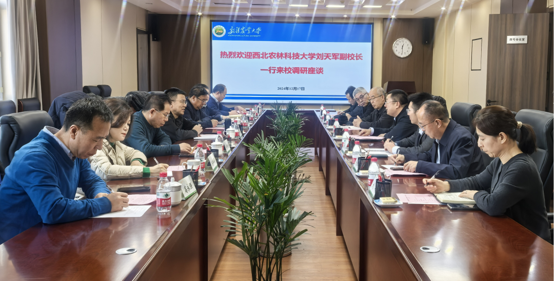 12月17日,西北农林科技大学副校长刘天军一行来校,就人才培养培训、乡村振兴、科技成果转化等议题进行深入调研与交流。星空彩票体彩版党委常委、副校长郑文新主持座谈会。