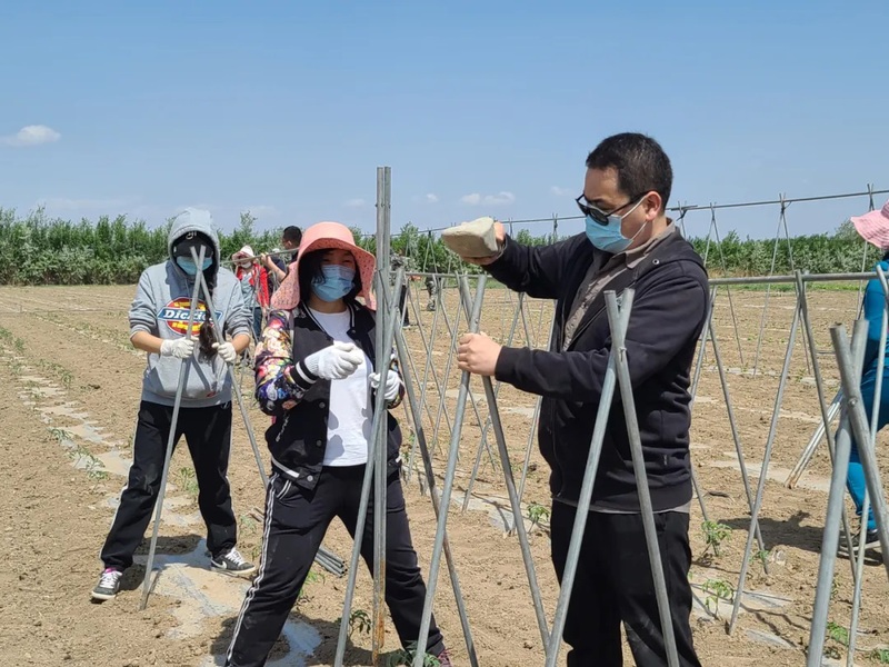 劳动最光荣,劳动最崇高,劳动最伟大。在一天的劳动中,老师们先后完成了核桃林、榛子林的除草和西红柿、黄瓜的搭架工作。参与劳动的有学院领导,也有教授博士,有即将退休的老教师,也有新入职的年轻教师,大家合理分工,相互配合,保质保量的完成了本次劳动任务。老师们的衣襟被汗水浸透,身上沾满了泥土,但看着地里的杂草被清除干净,看着蔬菜田里架起整齐的支架,所有的辛苦都化作老师们脸上一抹疲惫的微笑。