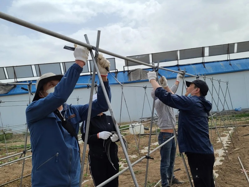 老师们亲自维护,搭架,种植,