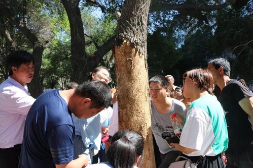 理论培训结束后,阿地力·沙塔尔教授、祝传书教授、蒋萍老师、高桂珍老师、迪丽努尔老师、徐方媛老师分组带队,在校园内就白蜡窄吉丁的生活习性、危害特点等进行了现场教学,大家对白蜡窄吉丁有了更深刻的印象和理解。