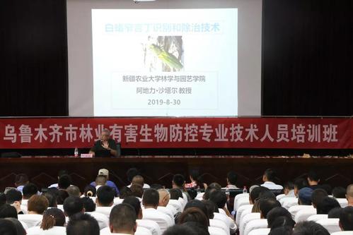 2019年8月22日在乌鲁木齐市发现了林木重大外来害虫——白蜡窄吉丁,乌鲁木齐市林业有害生物防治检疫局委托我院阿地力·沙塔尔教授就“白蜡窄吉丁识别和除治技术”对全市林业技术人员进行培训。白蜡窄吉丁是白蜡为主的园林树木的毁灭性害虫,其隐蔽性强,防治难度极大。该害虫在乌鲁木齐市的出现对乌鲁木齐市乃至全疆园林绿化事业健康发展具极大威胁。