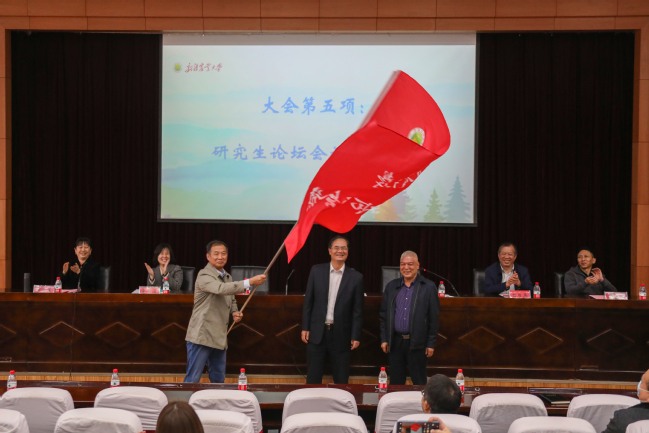 本届论坛在组委会及承办学院的努力下,顺利完成了各项工作,共收到来自16个研究生培养单位的有效投稿论文688篇。下一届研究学术论坛的承办单位园艺学院院长高杰作了表态发言,大会现场进行了研究生论坛会旗交接仪式。