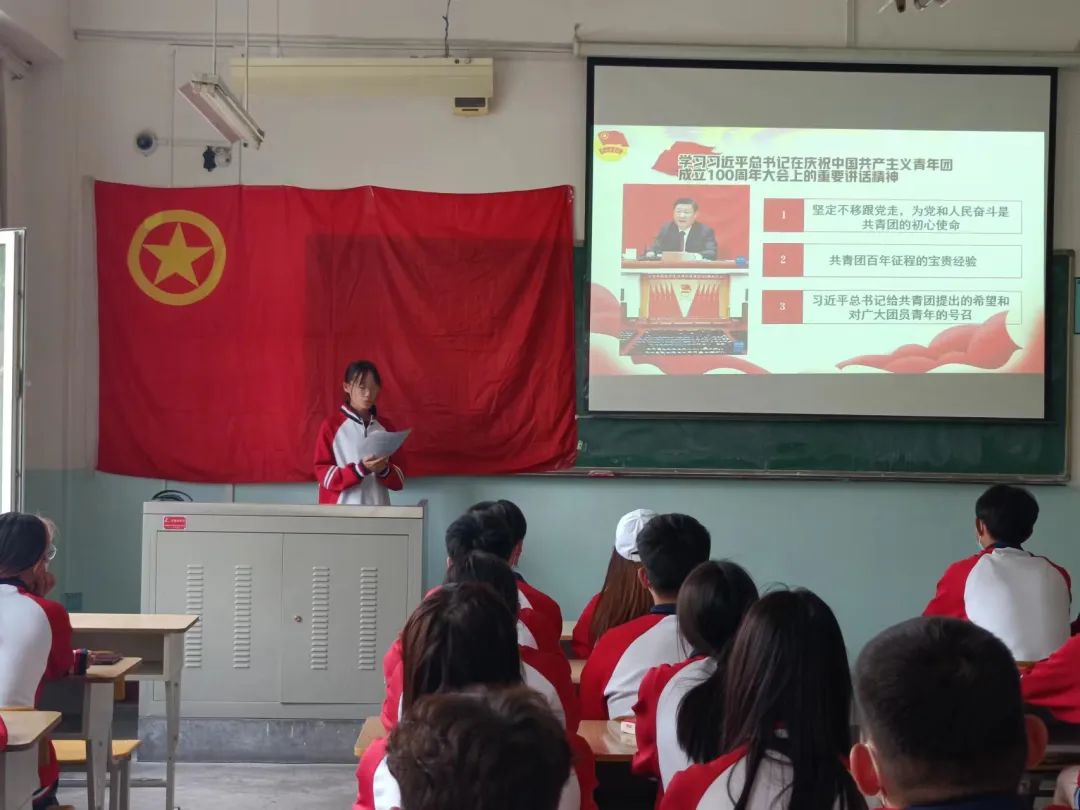本次团日活动以团员自学和各支部集体学习相结合的方式进行,同学们学习了习近平总书记在庆祝中国共产主义青年团成立100周年大会上的重要讲话精神,观看了《习近平代表党中央,向全体共青团员和各级共青团组织、团干部,致以热烈的祝贺和诚挚的问候》、《有我》、《时空跨越百年,来一场青春的对话》等视频,激励了广大团员青年在实现中华民族伟大复兴中国梦的新征程上奋勇前进。