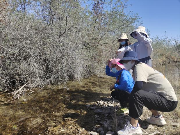 为能够给推广沙棘种植提供更有力的实验数据,观察更多环境下沙棘的生长情况,实践团队于2022年5月进入乌什县沙棘林湿地公园自然保护区进行系统考察,穿过辽阔的湿地,迈过潺潺溪流,细致观察每一株植株的生长状况,对整个湿地公园的生态环境进行了综合的考察并对沙棘的真实生长数据进行了纪录。