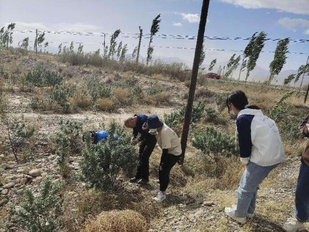2022年4月初,实践团队以三区人才项目为依托,开展专业实践和社会实践。孙桂丽教授带领三名研究生,一名本科生,首先来到阿克苏的戈壁上考察野生沙棘及人工种植沙棘在荒漠化治理中的应用情况,经过实地考察,认识到沙棘的叶小,耐贫瘠、耐干旱,适应荒漠的自然环境,是优秀的抗旱植株,适合推广种植。