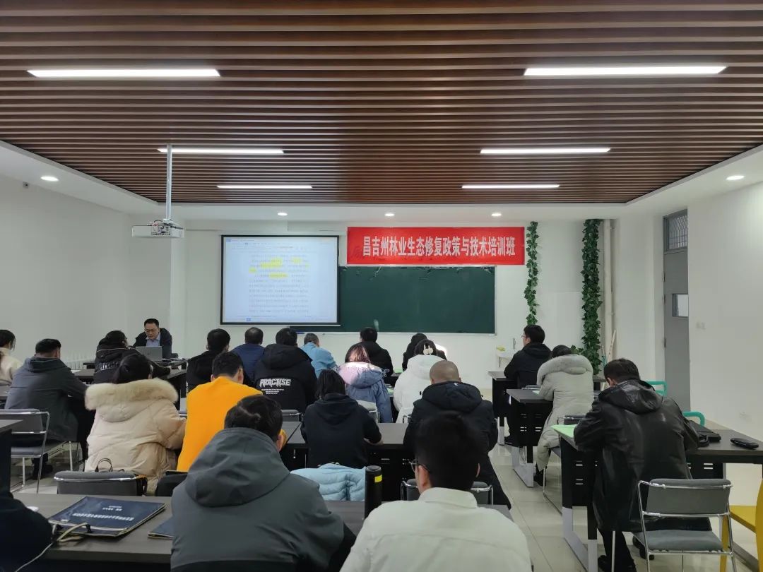 本次培训为期四天,以集中专题讲座、参观考察等形式展开,为各位学员授课的老师不仅有来自学院相关专业的专家教授,还邀请了自治区相关部门的领导干部,培训内容主要涵盖林业生态建设、林长制政策解读、造林绿化、防沙治沙、退耕还林、林业信息化、林草统计、造林上图、林草项目申报等林业行业相关领域,分别从学界与业界两个角度帮助学员们掌握相关领域的最新知识。
