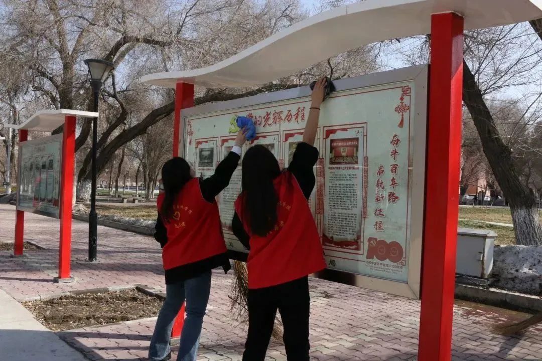 下午3:00本次志愿活动正式开始,分为清扫街道和擦拭伟人雕像、宣传栏两个部分。各位志愿者都铆足干劲,充分弘扬雷锋精神,在自己的责任区内挥洒着汗水。同时,在志愿活动过程中,各位同学积极配合、团结协作,共同克服困难,拉进了彼此之间的距离。