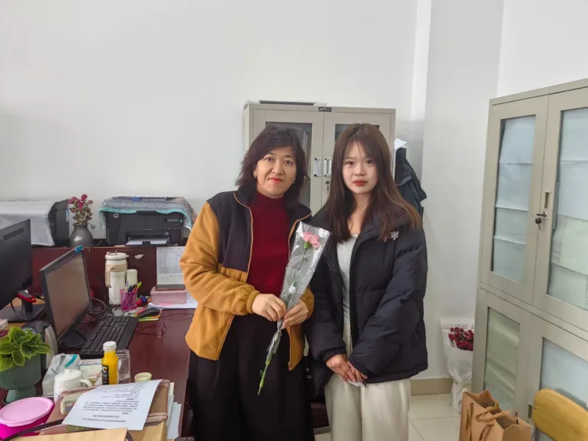 “老师,您辛苦了!祝您女神节快乐!”学生们将手中的鲜花献给她们,用最真挚的话语,向女性老师们送上节日的祝福。教职工接过学生递来的鲜花,激动之情溢于言表:“谢谢你们!”