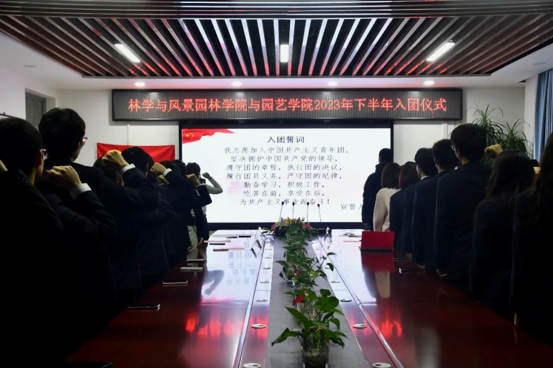 为深入学习贯彻党的二十大精神和共青团十九大精神,进一步加强学校共青团队伍建设,深入贯彻习近平新时代中国特色社会主义思想,增强青年的社会责任感与使命感,诠释青年精神、展示青年风采、书写青春华章,切实提升团员发展质量,强化团员意识,增强团组织的吸引力、凝聚力和战斗力,2023年12月26日,星空彩票体彩版林学与风景园林学院与园艺学院于林学与风景园林学院111会议室召开了入团仪式,全体2023年度新发展的团员参加了此次活动。