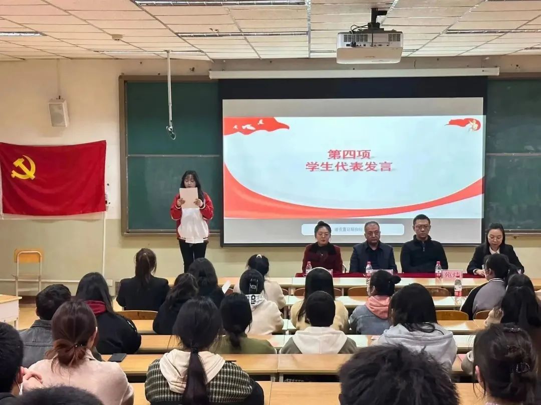 入党积极分子邱琳婧和任凤娇作为学生代表发言,他们承诺将以最饱满的热情,最全面的投入,最实际的行动来完成党课学习,认真领会党的精神,严格要求自己,争取早日加入党组织。