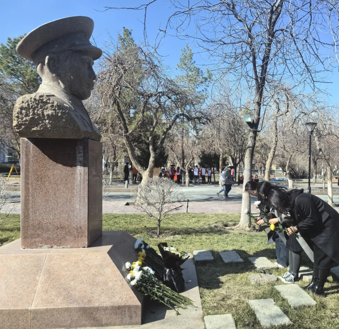 在学生党员董玲萍同志精彩的讲述中,我们深刻领悟到了王震将军的崇高品质和不朽功绩,感受到了他们顽强拼搏、不屈不挠的革命精神。随后,在《献花曲》的婉转乐章中,我们怀着崇敬之情,向王震将军雕像献上鲜花,行三鞠躬礼,向革命先烈表达我们永远铭记的誓言和敬意。