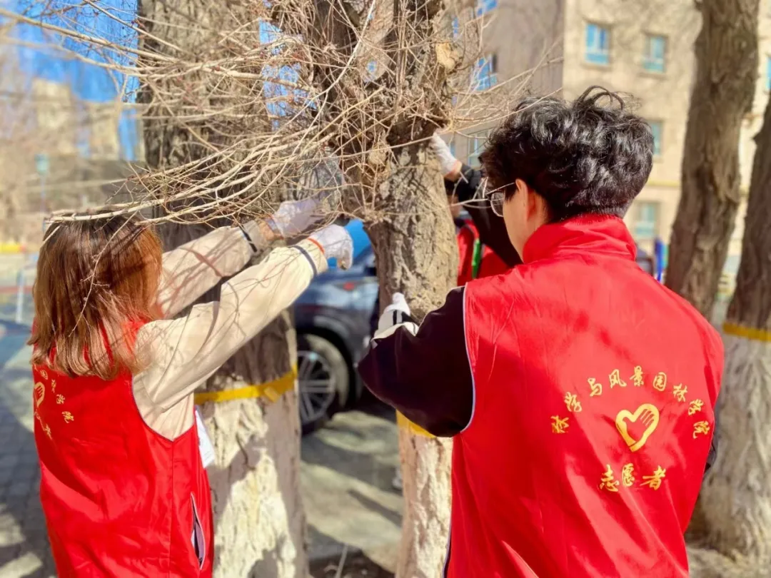 下午16:00,志愿者们抵达志愿服务地点,社区负责人对志愿者们的到来表示了热烈欢迎和衷心感谢。在志愿服务活动开始前,青年志愿者协会副会长孟聪和于硕同学先后为大家讲解了树木病虫害防治相关知识和树枝修剪的重要性,并特别提醒大家在修剪时要注意安全。随后,志愿者们分成若干小组,领取了修剪工具,领取了责任区域,开始修剪树枝工作。