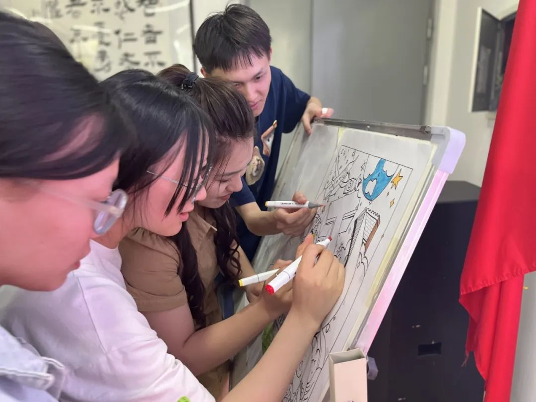 聚是一团火,散是满天星。岁月的流逝回不去执着的梦,时光的飞驰带不走永恒的心,为了留下这难忘的时刻,全体党员利用专业所学在图纸上面用多彩画笔,共绘青春蓝图。