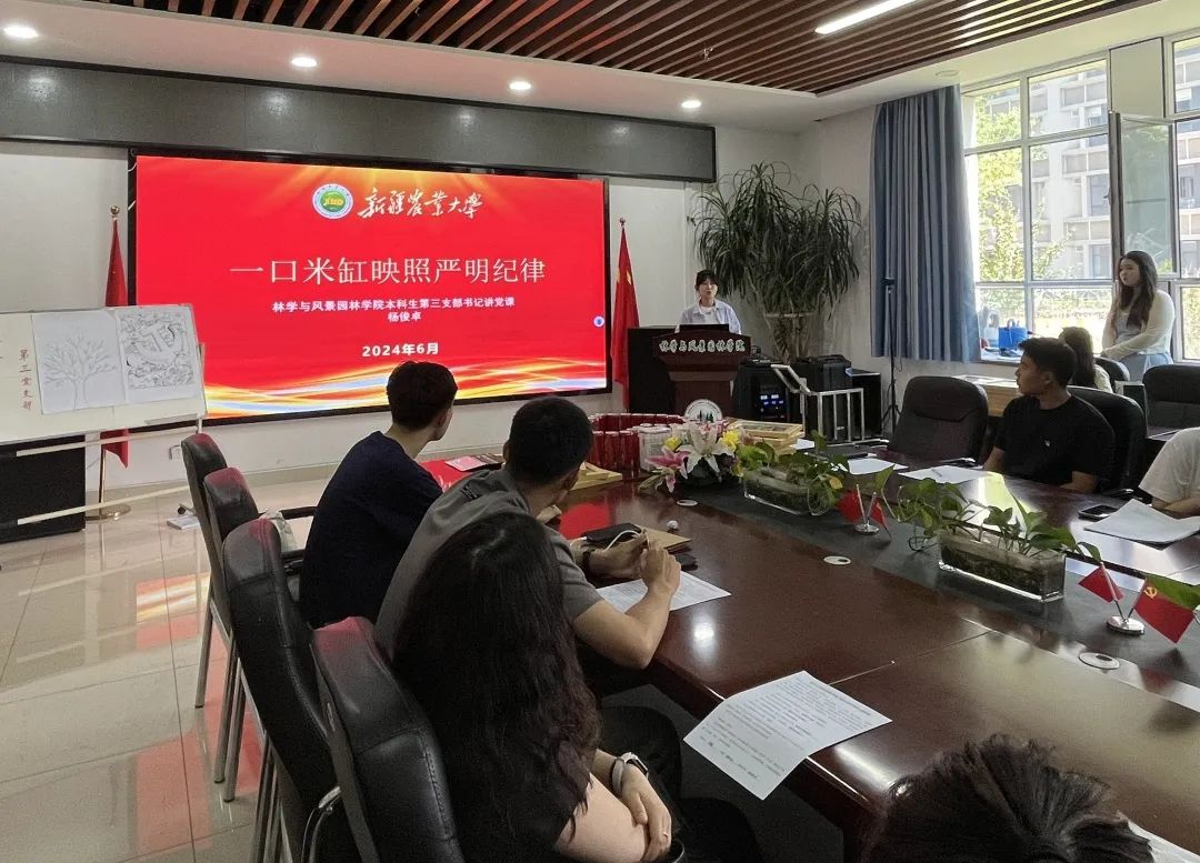 为认真贯彻落实习近平总书记关于党纪学习教育的重要讲话和指示精神,扎实开展党纪学习教育,杨俊卓老师为毕业生党员上了大学里最后一堂党课《一口米缸映照严明纪律》,使青年党员学会从革命文物和党史故事中汲取智慧力量,激励同志们在以后的工作和生活中要严明纪律,不忘初心。
