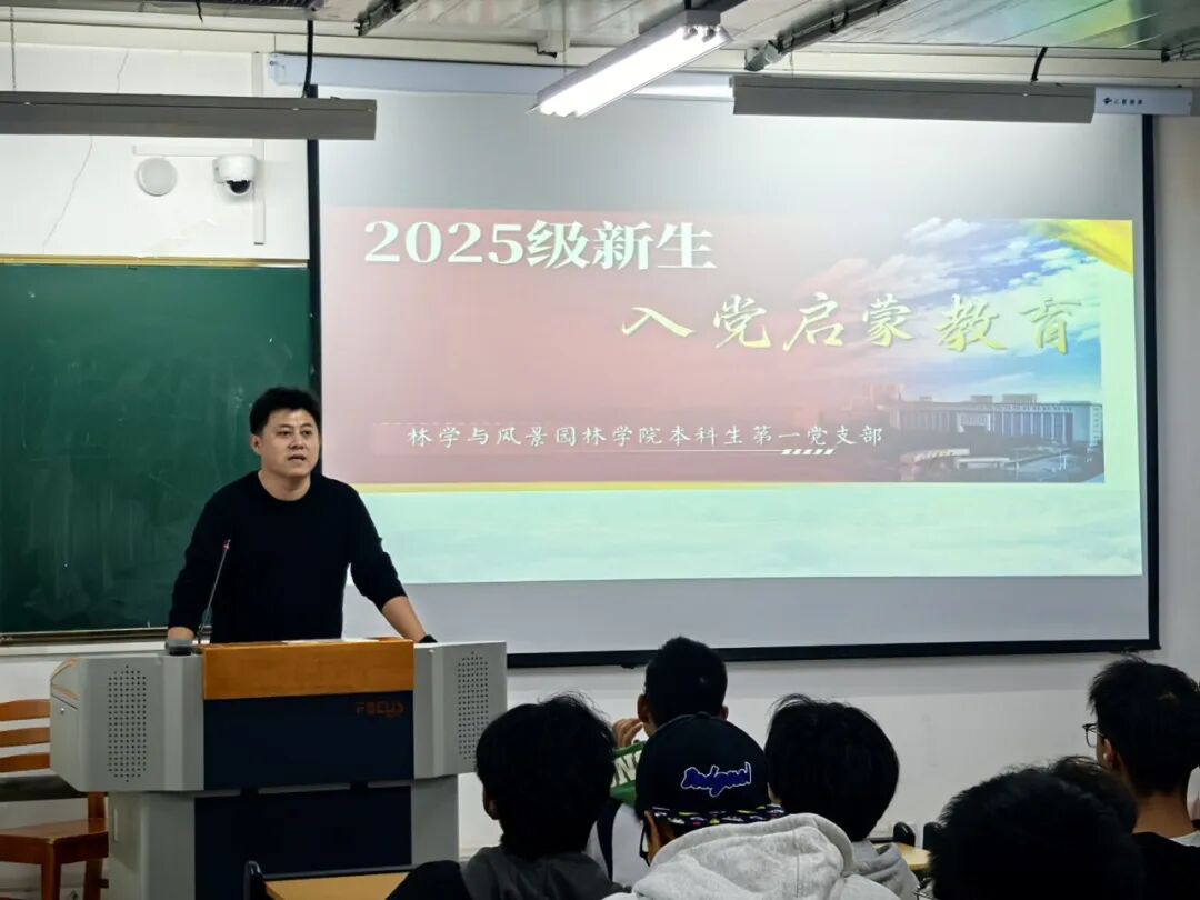 为加强新生思想政治引领,引导新生端正入党动机,筑牢信仰根基,10月19日下午,林学与风景园林学院组织开展了2025级新生入党启蒙教育。本次活动由学院本科生第一党支部书记吴智乐、第二党支部书记孜米兰·赛吾丁分别面向所在支部专业新生进行专题教育。