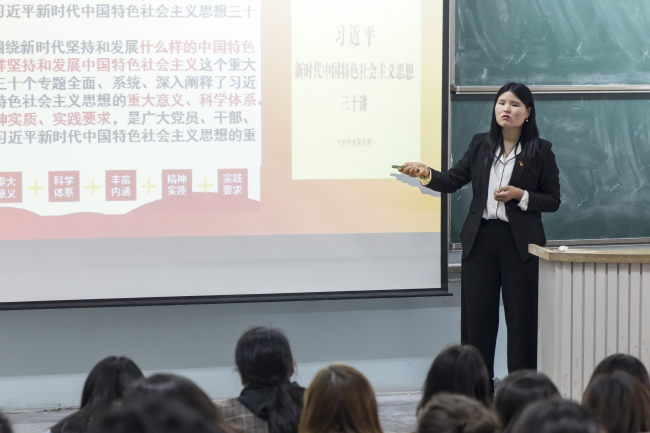 马克思主义学院毛泽东思想和中国特色社会主义理论体系概论教研室青年骨干教师丁露露说:“新时代下,高校思政教育关系到培养什么人、怎样培养人、为谁培养人这一根本问题。听了习近平总书记在学校思想政治理论课教师座谈会上的讲话后,我受益匪浅。习近平总书记强调,办好思想政治理论课关键在教师,关键在发挥教师的积极性、主动性、创造性。思政课教师,要给学生心灵埋下真善美的种子,引导学生扣好人生第一粒扣子。作为一名新时代高校思政课教师,我深感任务艰巨、使命光荣。在今后的工作中,我将牢记习总书记的嘱托,坚持理论性和实践性相统一,用科学理论培养人,重视思政课的实践性,把思政小课堂同社会大课堂结合起来,教育引导学生立鸿鹄志,做奋斗者。”
