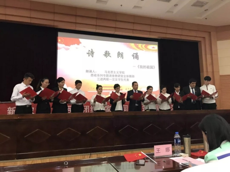 比赛开始前,马院教师代表和“三进两联一交友”学生们深情地朗诵《我的祖国》,诉说着农大师生热爱伟大祖国的浓浓情怀。