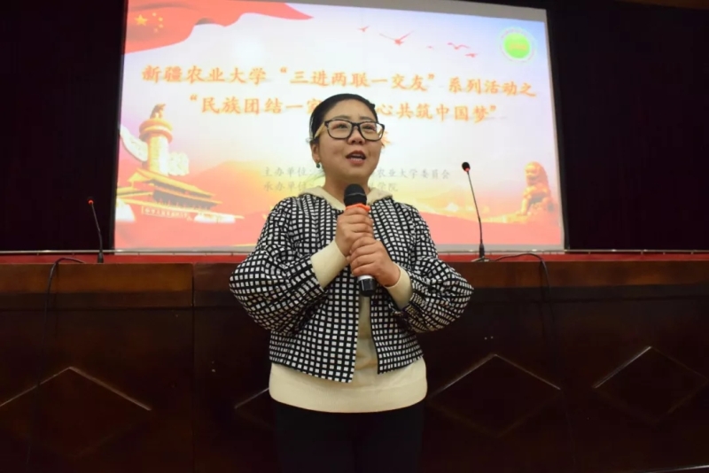 宣传部副部长赵晓露老师为本次活动致辞,民族团结不光是在口头上,还要落在实践上。希望每一位参赛选手以“民族团结一家亲,同心共筑中国梦”为核心,结合我们身边的实例,多层次、多方位、多形式的进行演讲,我们要像石榴籽那样牢牢地抱在一起。