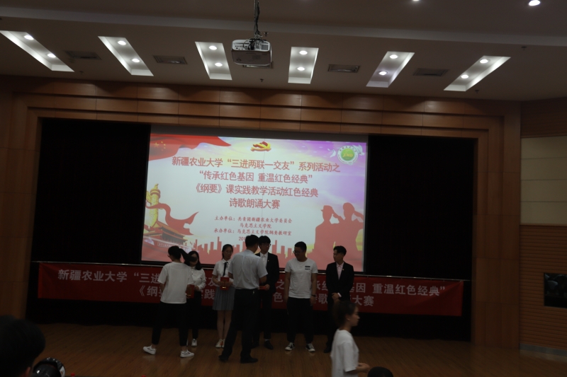 另外,除了学生的比赛节目,还有马克思主义学院党员老师们的参与。尤其是裴红娟老师和苗志娟老师的精彩表演,为比赛增添了更为浓厚的党性色彩。裴红娟老师一首《山丹丹花开红艳艳》让全体师生仿佛瞬间回到了,毛泽东主席带领红军战士,经过千山万水,爬雪山、过草地,飞夺泸定桥,险胜腊子口后,到达陕北后激动人心的场面。唱出了,人民群众对于美好生活的向往,对于党带领人民从胜利走向胜利的期盼。苗志娟老师诵读了杨开慧烈士《给一弟的信》,仿佛又将我们拉回到毛泽东主席早年为了革命,舍小家为大家。杨开慧烈士为了革命甘愿流血牺牲,甘愿付出一切的革命大无畏主义精神。让在场的老师和学生深深体会到革命道路之不易与艰难,深刻理解毛泽东主席的名言“革命不是请客吃饭”的深刻内涵。