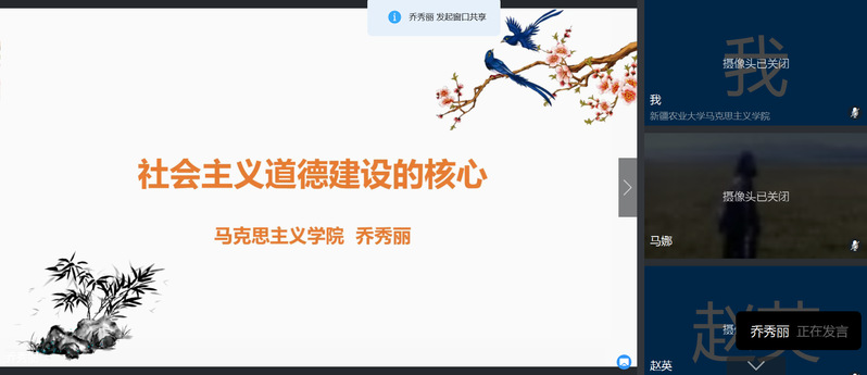 为促进疫情形势下我院网络教学顺利开展,推动我院青年教师教书育人能力和水平,同时为广大教师提供一个展示才华、相互促进、共同提高的平台。6月10日下午,马克思主义学院举办了2020年春季学期线上教学展示活动,学院院长贾友军以及其他在校教职工参加,副院长努力曼·依米提主持。