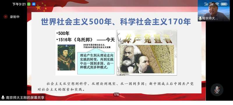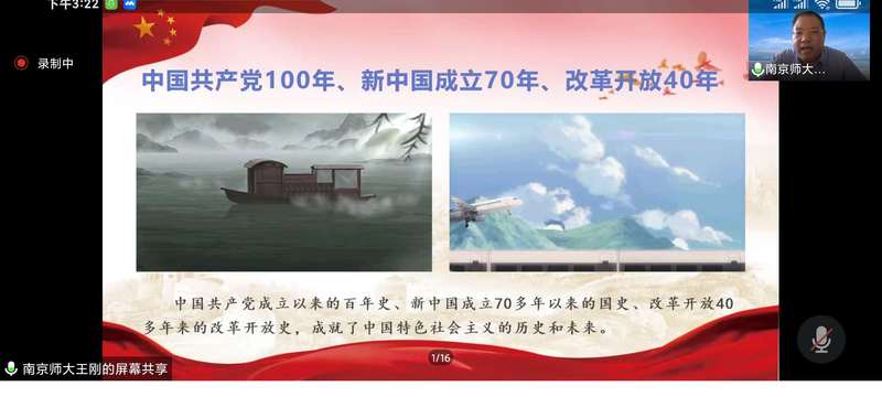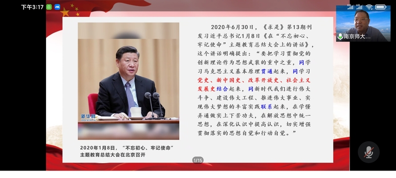 史鉴今、资政育人,重视从历史中汲取智慧和力量是中国共产党人的优良传统。王刚教授从“四史”学习教育何以开展、“四史”学习教育的主要内容以及开展“四史”学习教育的路径三个层面全方位描摹出高校开展“四史”学习教育的全图景,从总书记重要讲话到中国特色社会主义发展蓬勃图景,展现了百年未有之大变局加速演进形势下面临的历史与现实问题,对当下开展“四史”学习教育的重要性和必要性展开了深入全面的诠释;辅以鲜活的教学案例,线上演绎了一堂“四史”学习教育的生动示范课程。通篇报告深入浅出、内容鞭辟入里,得到马院全体教职员工一致好评。