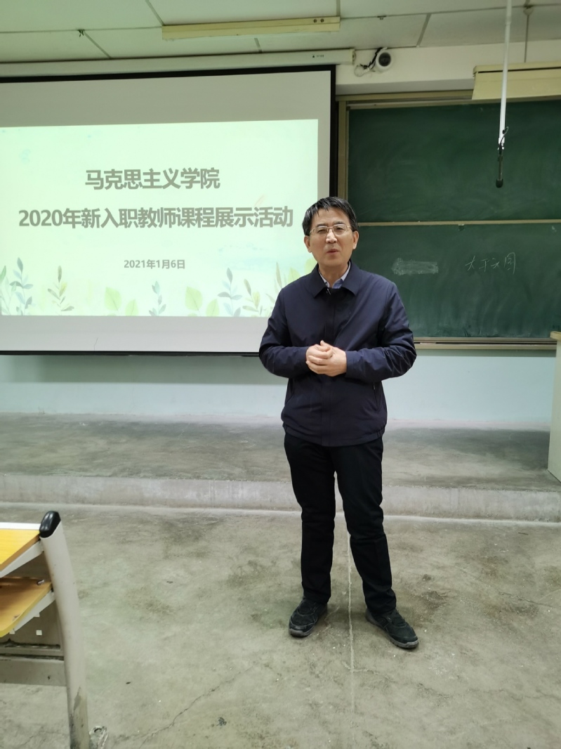 然后,“纲要”教研室主任李咏宾、“原理”教研室主任迪丽娜尔·阿不力孜和“概论”教研室主任张涛,分别对新入职教师的展示进行了点评,并提出中肯的意见建议。