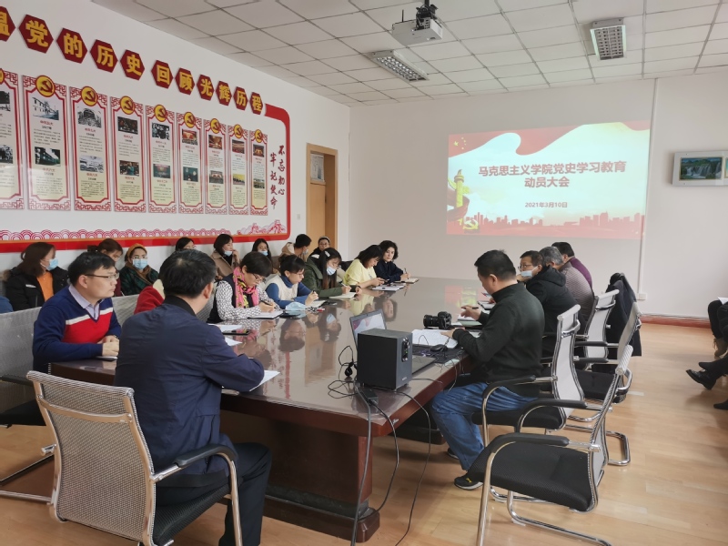 响应习近平总书记和党中央的号召,2021年3月10日下午,马克思主义学院召开了党史学习教育动员会议。全体在岗教职工共同观看总书记在党史学习教育动员大会上的重要讲话,开启了党史学习教育活动的大幕。