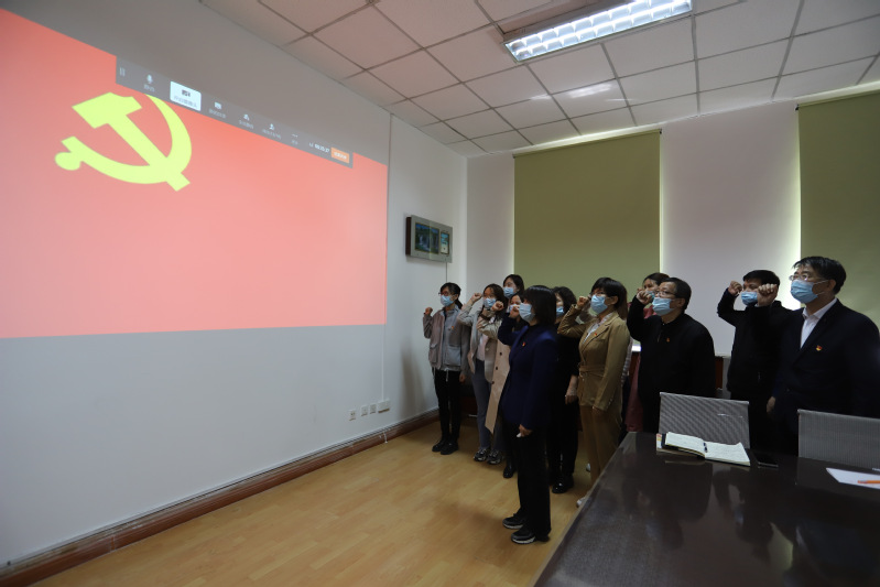 首先,马克思主义学院全体在校教师在副院长蒲丽霞的领誓下,面对党旗重温入党誓词,庄严宣誓。