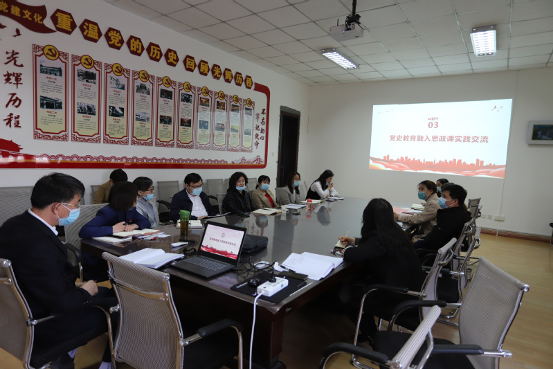 宣讲完毕,蒲丽霞副院长主持了党史教育融入思政课的交流活动,她汇报了学院对党史教育融入思政课的安排部署和前期工作,并强调,思政课教师要在自身学习党史的同时,将党史教育融入每门课程中,带领学生学习党史,引导他们感党恩、听党话、跟党走。随后,“原理”教研室主任迪丽娜尔·阿布力孜、“教程”教研室负责人马娜分别从教研室的角度对开展党史教育融入思政课的实践探索进行发言,青年教师王宇、许佳丽、杜彬分别对各自在党史融入课程方面的思考和尝试作了交流,发言详实具体,针对性强,充分展现了老师们对课程的把握和探索的热情。