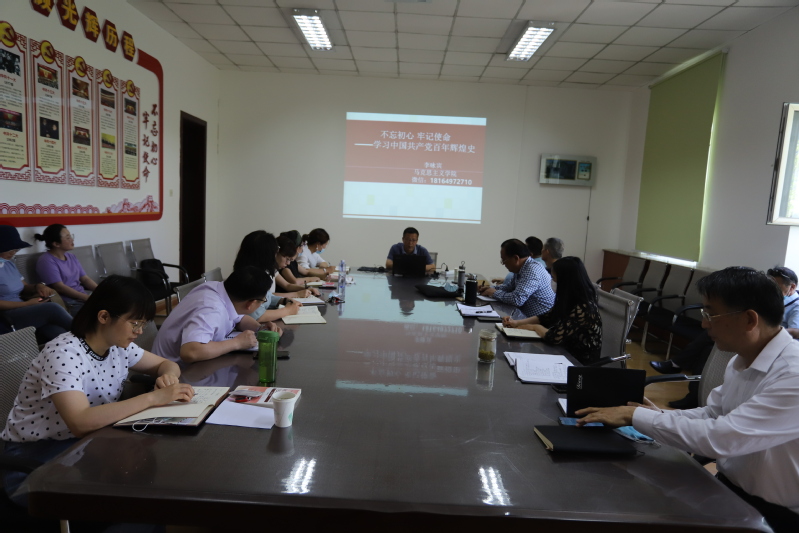 学院“纲要”教研室主任李咏宾副教授为全体教师做了宣讲,此次宣讲主题为《不忘初心 牢记使命——学习中国共产党百年辉煌史》。这次宣讲内容丰富,层次分明,主要内容围绕为什么学习、如何学习、怎样行动、中共党史的基本脉络、把握四史逻辑关系、中共党史的根本经验与规律这几个层面展开。专题内容以初心使命为主线,以党学逻辑叙述党的百年辉煌史。李咏宾老师讲道:“中国共产党人身上具有宝贵的精神,始终做到知行合一,并敢于以“刀刃向内”的方式进行自我革命,始终保持鲜活的生命力,肩负起时代的重任。”教师们听完宣讲后收获颇丰,感触良多。在即将迎来中国共产党成立100周年之际,我们定将不忘初心,牢记使命,为实现中华民族伟大复兴的中国梦而不懈奋斗。