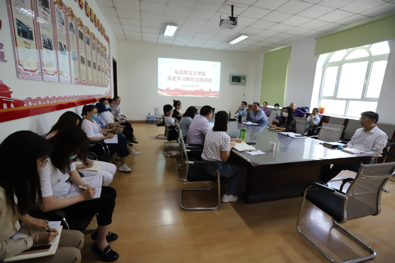 5月26日下午,马克思主义学院教师在学院会议室共同参加了党史学习教育主题活动,马克思主义学院党总支副书记、院长贾友军主持会议。