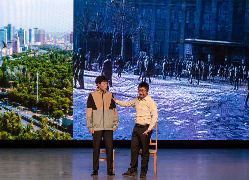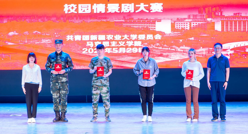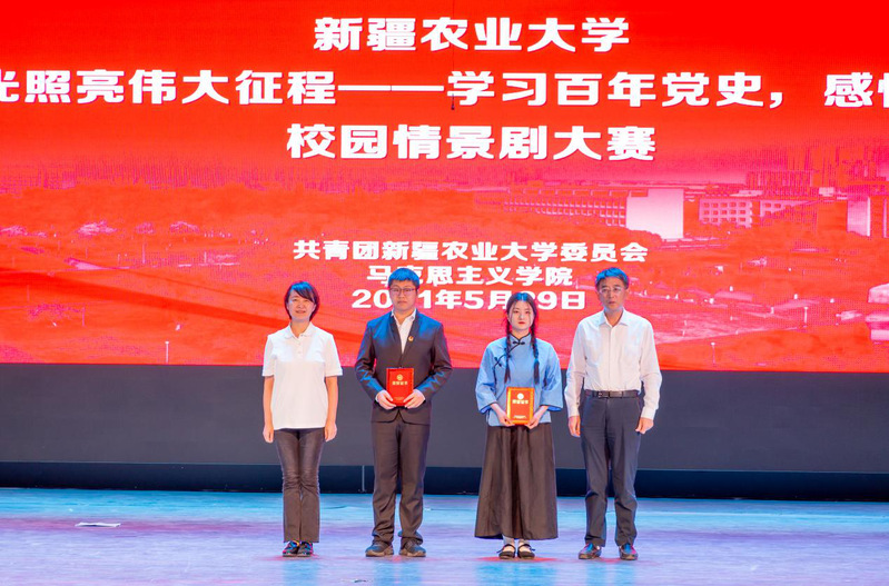 随后进入比赛环节。参加决赛的七个优秀小组,选取了中国共产党百年奋斗史中不同历史时期的片段,以跌宕起伏的剧情设计、新颖多样的演绎形式、绘声绘色的表演为师生观众呈现了一场精彩的情景剧演出。赞颂青年学子爱国精神的《五四运动薪火相传——吾辈当自强》、彰显革命英雄视死如归气概的《中华之殇—英雄不死》《我的“自白书”》、反映农大教师投身脱贫攻坚事业的《老师来了》、展现新疆各族群众喜迎党的生日的《我爱我的祖国》,展现新时代青年学子立志扎根边疆、奉献祖国心路历程的《传承者》,点赞新时代人民子弟兵保家卫国的《你们是最可爱的人》等七个节目,同学们置身情境,充分投入到角色的扮演和情感的诠释之中,用默契的配合和用心的表演为师生观众呈现了一幕幕感人至深的故事。现场表演精彩纷呈,观众的情绪随着情节发展而起起伏伏,不时爆发出热烈的掌声。