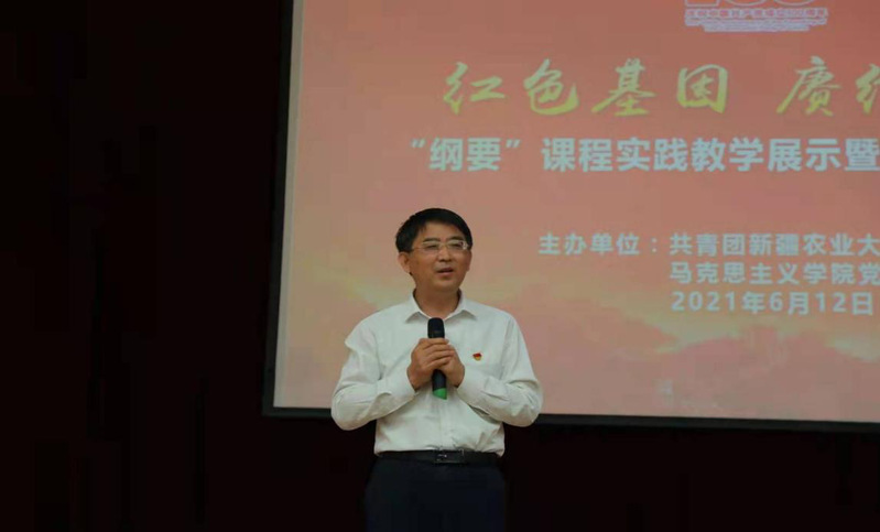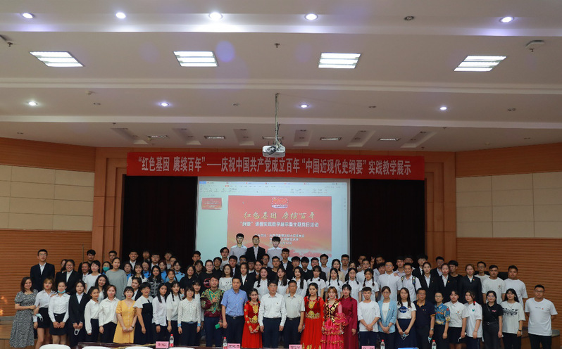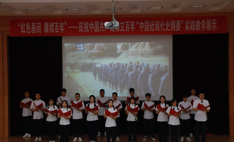 6月12日上午,由校团委主办,马克思主义学院“中国近现代史纲要”(以下简称“纲要”)教研室、第二党支部承办的“红色基因 赓续百年”实践教学展示暨主题党日活动在学术报告厅举行。校机关党委书记、组织部副部长匡延昌,学工部副部长许剑,马克思主义学院院长贾友军,副院长蒲丽霞,纲要课教师、第二党支部党员及实践教学展示小组的学生参加活动。