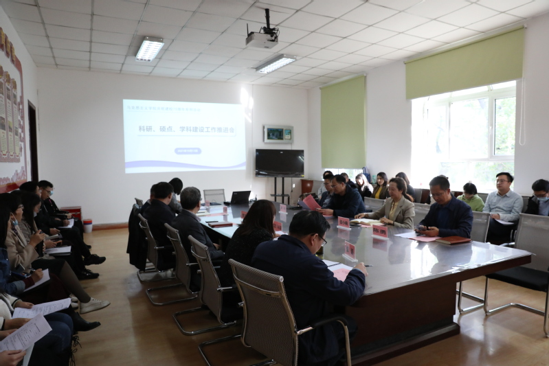 为促进马克思主义学院硕士点建设、学科建设以及科研工作一体推进,10月13日下午,马克思主义学院以申报星空彩票体彩版人文社科基地为契机,召开了“庆祝校庆70周年系列活动之科研、硕士学位点、学科建设工作推进会”。校党委常委、副校长、马克思主义学院院长张小楠,研究生院院长张巨松、发展规划处处长陈勇、科学技术处处长颜安、马克思主义学院党总支书记艾尼瓦尔·阿合买提以及学院骨干教师、青年教师近40人参加会议。会议由副院长蒲丽霞主持。