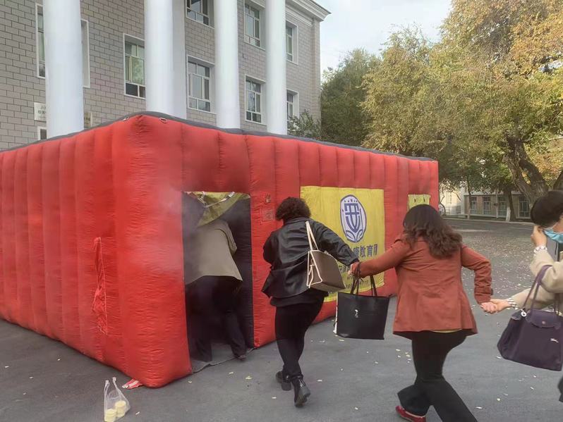 随后,马克思主义学院全体教师在张宗涛教官的指引下,进行了火灾疏散演练,演练了火灾现场安全撤离,通过演练使老师们都真实地感受到了火灾现场情形,进一步提高了自身消防安全意识,力求防患于未然。