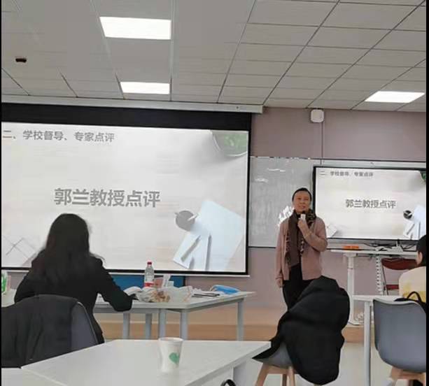 之后,学校教学督导郭兰教授对本次教学展示进行点评。她对学院举办教学展示活动表示肯定,对8位教师的展示给予高度评价,并对新进教师提出四点希望:一是要有教学热情,这是做好教学工作的关键和基础。二是要多读书、多思考,增强自己的知识积累和储备。三是要关注学生的需求,结合具体实际开展教学。四是多了解学校的相关教学要求,并严格遵守执行。