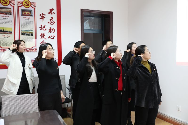 接着,举行新进教师代表宣誓仪式。马克思主义学院党总支委员李咏宾带领诵读誓词,新进教师代表身着正装,仪态端庄,右手举拳,整齐列队,宣读誓词铿锵有力。