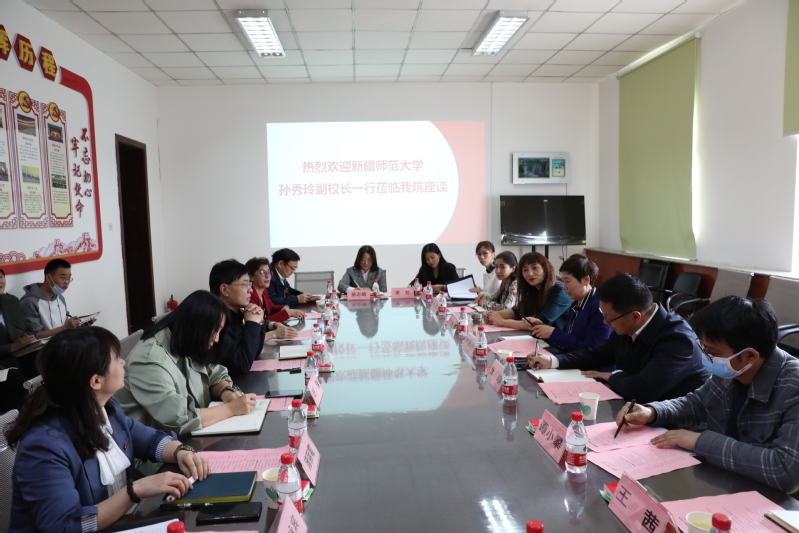 为贯彻落实党中央关于加强新疆哲学社会科学工作的要求,根据自治区相关会议精神,加强疆内高校马克思主义学院交流合作,推动马克思主义学院建设,4月8日上午,新疆师范大学马克思主义学院支援星空彩票体彩版马克思主义学院座谈会在我校召开。新疆师范大学党委常委、副校长、马克思主义学院院长孙秀玲、马克思主义学院党委书记张峥、党委副书记谭小攀、副院长罗志佳、形势与政策教研室主任米克巴农·艾克拉木、简明新疆地方史教程教研室主任王茜一行六人莅临我校交流座谈。星空彩票体彩版校长蒋平安、党办校办副主任岳瑞、马克思主义学院副院长努力曼·依米提、蒲丽霞、马克思主义学院各教研室主任、支部书记及部分青年教师参加座谈会。