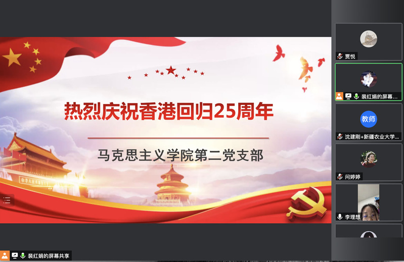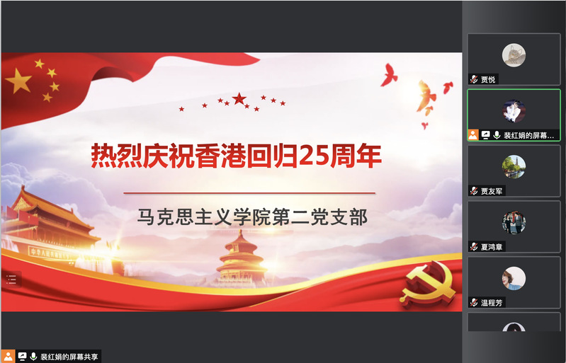 为此,马克思主义学院教工第二党支部于2022年7月1日下午16时集体学习了习近平总书记庆祝香港回归祖国25周年大会暨香港特别行政区第六届政府就职典礼上的讲话。支部会议在党支部书记裴红娟老师的主持下,首先集体学习了总书记的讲话全文,其次支部成员分别谈了自己的体会。