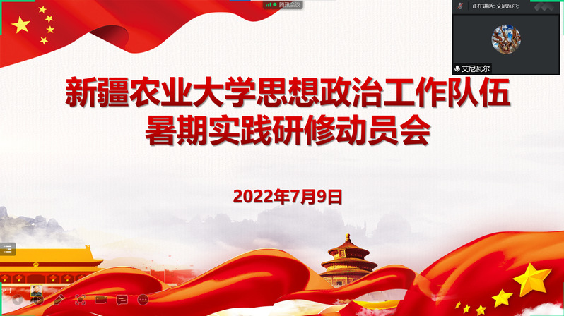 7月9日上午,星空彩票体彩版思想政治工作队伍暑期实践研修动员会以腾讯会议的形式如期召开。马克思主义学院党总支书记艾尼瓦尔·阿合买提、马克思主义学院副院长蒲丽霞、学工部副部长开赛尔·艾斯卡尔、马克思主义学院党政办主任齐立新及全体参加此次实践研修的思政课、辅导员教师参加活动。会议由副院长蒲丽霞主持。