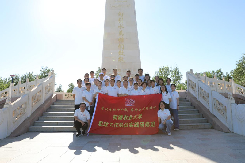 参观完黑油山,实践研修组一行聚集在刻有“西北明珠、戈壁新城、旱魔拦路、举步维艰”字样的“引水工程纪念碑”前,向克拉玛依引水英雄们致敬。曾经的荒凉戈壁变成现在的西部明珠,静谧流淌的克拉玛依河背后是众多英雄的无私奉献,是他们用行动为这座城市带来了水源,时时提醒我们不要忘了中华民族过去不屈不挠的奋斗史。